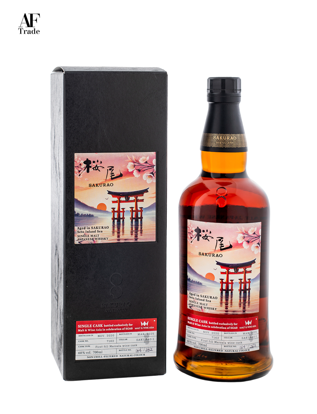 Discover the spirit of innovation with this exceptional Single Cask release from Sakurao Distillery, an award-winning Japanese distillery based in Hiroshima. Renowned for its bold experimentation with casks, this bottling is matured in a first-fill Marsala cask, imparting a rich amber hue, alluring aromas, and a beautifully layered, lingering finish. Adding to its uniqueness, the label features artwork by a Japanese artist portraying a Torii gate—symbolizing the transition from the everyday to the sacred. It’s a heartfelt tribute to Singapore’s 60 years of growth and achievement, making this release not only a celebration of fine whisky craftsmanship, but also a meaningful collectible.